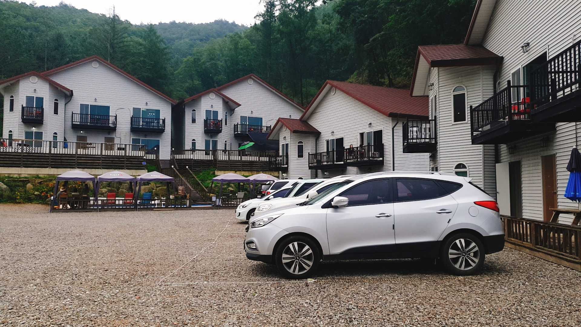 1층, 2층 모두 개별 테라스가 있어서 개별 바베큐를 즐기실 수 도 있으시구요^^ (저희는 바로 앞에서 개별 바베큐를 즐겼습니다) , 그리고 바깥쪽에 실내 바베큐잘이 또 따로 있었습니다, 그래서 비가 오나, 눈이오나 여행의 꽃인 바베큐를 모두 즐길 수 있습니다. 주차장도 넓어서 주차하는데에 문제 없었구요~