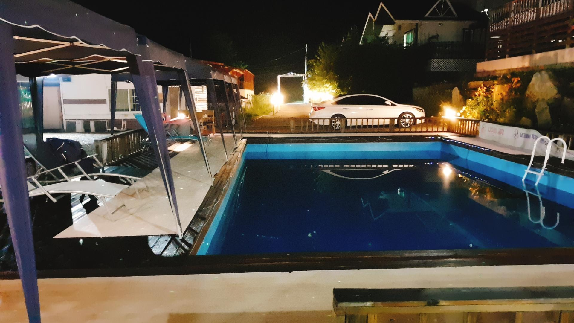 수영장 이 있는데.. 저녁이 되니까 사장님께서 물을 다 빼고 다시 채우시더라구요~ 대박! 매일 청소하시는 듯! 해보였습니다. 엄청 부지런하신 사장님~ 나이스!